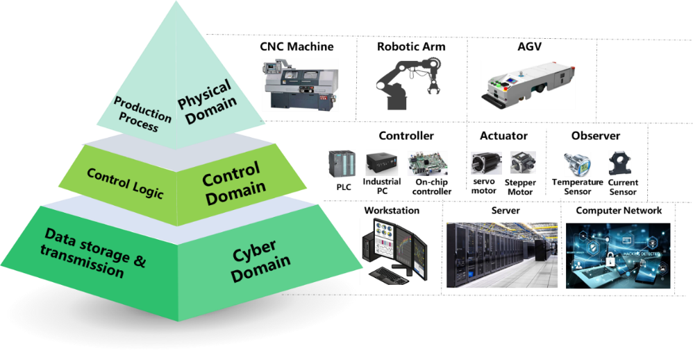 科研团队在信息域和控制域安全防护的基础上,针对工业系统生产工艺、制造装备物理行为集合等物理域特征空间的有限性,创新性地融入了物理域的行为白名单。通过异常行为检测严把安全关,做到一旦发生风险,物理域可及时制动,有效控制攻击对物理系统产生的影响,阻止安全事故的发生。科研团队分析并构建了面向物理系统跨域攻击的扩散模型,并针对该模型设计了自上而下的安全防御机制与自底向上的协同风险回溯策略,进一步提升防御的准确性,避免了各域单独检测虚警率高的问题,实现了安全风险原因的快速追溯、定位、修复与优化。