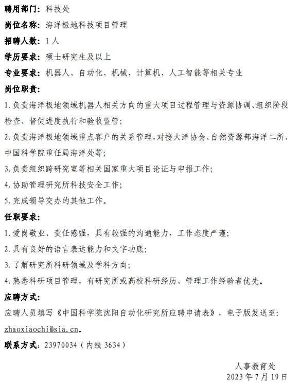 科技处诚聘海洋极地科技项目管理人员(已结束)
