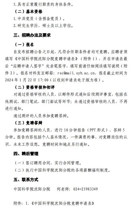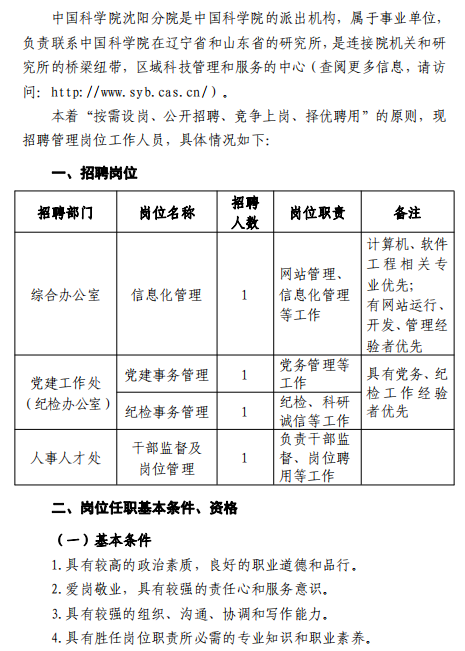 中国科学院沈阳分院招聘公告(已结束)